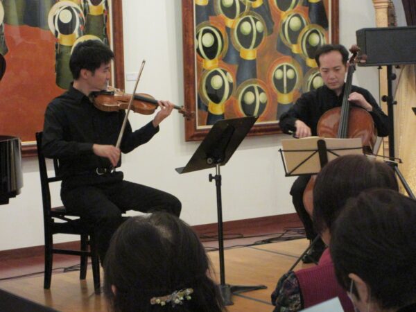 つぼみキンダーガーテン設立当初から、音楽会に携わっていただいているチェロリストの玉川克氏のプロデュースで、今回は、ドビュッシーのピアノトリオをメインにクリスマスメドレー等、馴染みのある曲目を演奏していただきました。ヴァイオリン、チェロ、ピアノの音色に酔いしれた2時間でした。