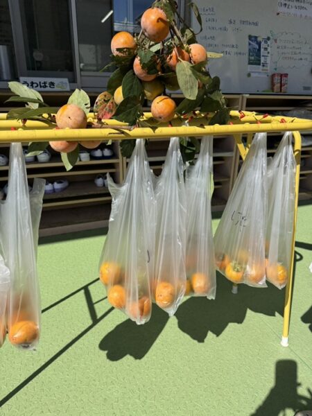 お昼にもぎたての柿をいただいたのですが、子どもたちの多くは柿が苦手のようです。