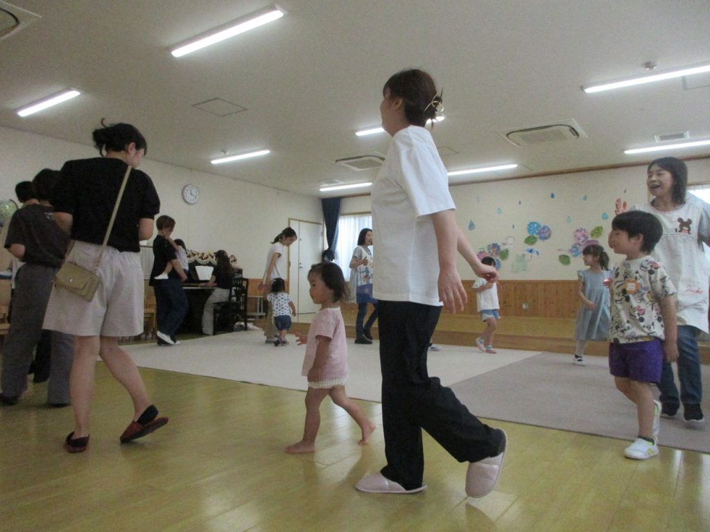 初めての未就園児のお友だちが参加してくれて、音楽に合わせてみんなで体を動かしました。