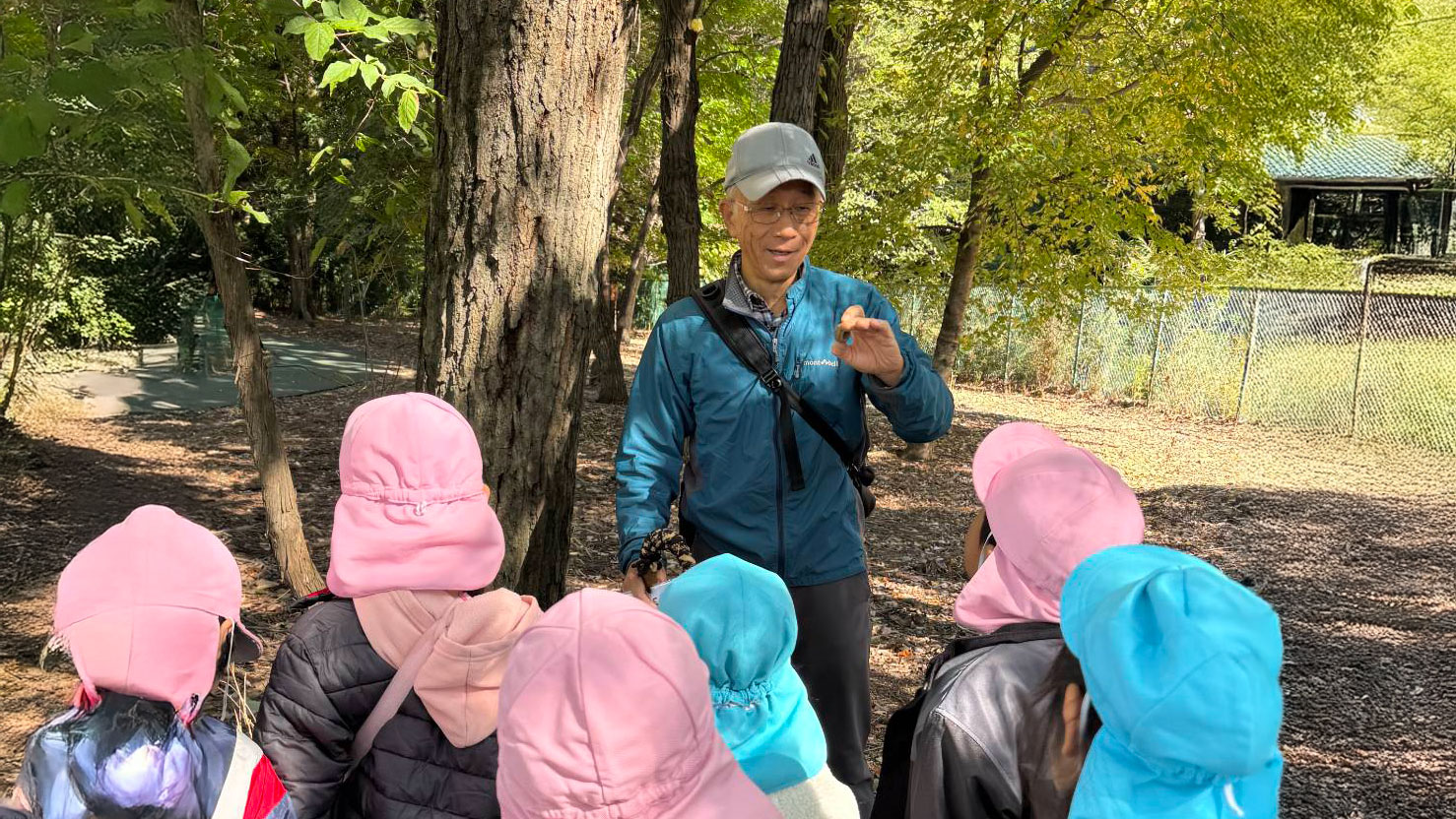 また、子どもたちの五感に働きかけるために、春と秋には近隣の公園まで出かけて行き、鳥のさえずりを聴いたり、木の実や落ち葉を拾ったりして自然と触れ合います。